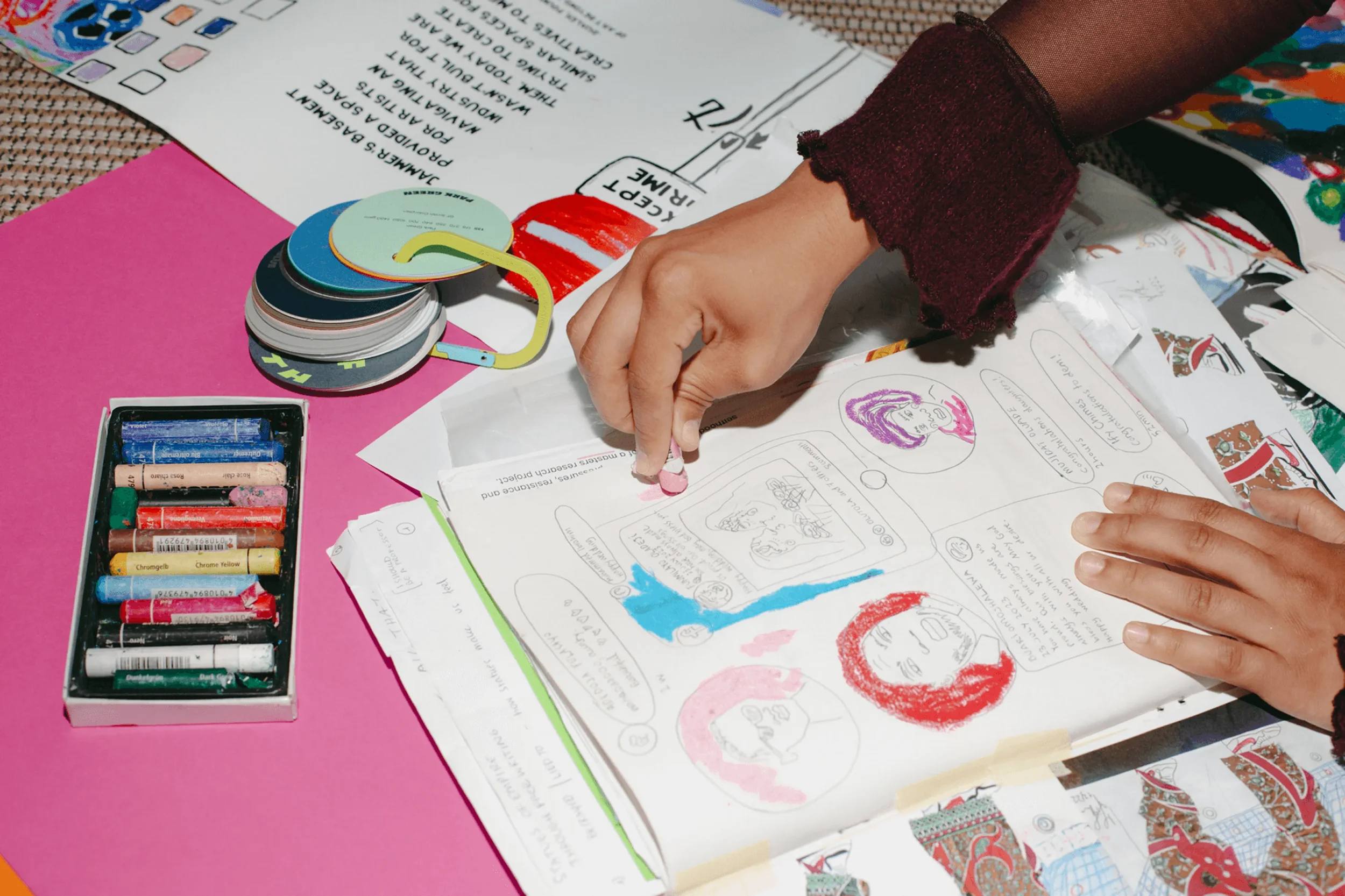 Parallel to my artistic practice, I focus on education and engagement. Through my platform Zinetopia (since 2021), I have impacted over 1500 people through discussion-led, critical workshops, and I lecture part-time at Ravensbourne University. I also develop research-informed projects exploring creative methodologies that connect art with social and cultural contexts.